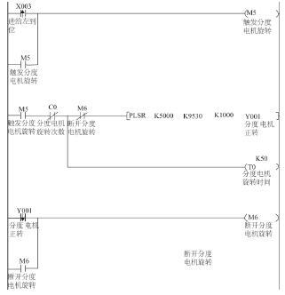 PLC 控制分度电机旋转采用 PLSR 指令,部分控制程序如图 8 所示。