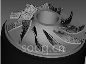 (1)采用刀具半径及刀具切削部分的半径均为R=3mm的球头铣刀(生 成 刀 路 轨 迹 所 使 用 的 刀具),仿真加工结果如下页图4所示。
