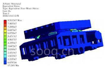 从 图 9 中 可 以 看 出, 转 台 的 最 大 应 力 为 146.2MPa,在材料的许用应力范围之内。