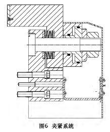 为保证铣削加工精度,在立柱与床身之间、工作台与底座之间增加液压夹紧机构( 图 6) ,保证在加工直齿过程中立柱与工作台固定不动。夹紧系统工作原理为: 液压来油夹紧,液压停油后叠簧放松。