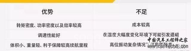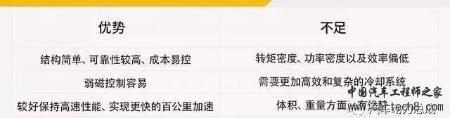 从目前技术优势来看,永磁同步电动机成为主流实至名归。值得注意的是,尽管在重量和体积方面,感应(交流异步)电动机并不占优势,但其转速范围广、成本低、工艺简单、运行可靠耐用。至于重量对续航里程的影响,如果未来电池续航里程大幅增加、感应电机体积优化做得好,或许会更有底气与永磁电机在市场表现上一争高下。