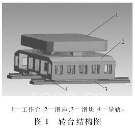 工作台与转台座之间通过轴承相连。轴承承载着工作台的自重以及加工件的重力。其承载面约束了工作台的轴向平动,施加此面的轴向位移为零; 承载面( 柱面) 连接轴承内圈,约束工作台在径向的来回平动,施加此面的径向位移为零。