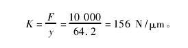 在 ANSYS Workbench 中,经过全面的计算求解,生成了回转工作台的总变形图,如图 4 所示。从图 4可知,工作台的最大变形量为 y = 64. 2 μm。为了方便计算,根据前文中已计算得出的径向和轴向切削力,取合外力最大值为 10 000 N 进行计算,得到工作台部件刚度