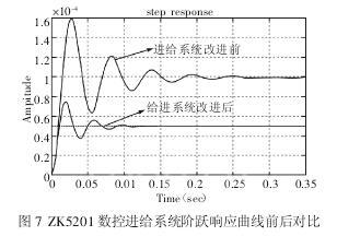 在改变系统的总的等效刚度和等效阻尼系数之后,可以分别得到改进前后系统的阶跃响应曲线,如图 7 所示。