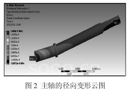 在 Workbench Mechanical 中,通过有限元后处理程序,得到主轴的径向方向变形,如图 2 所示。