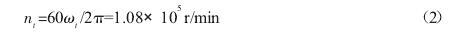 从表 1 可以得出,主轴的 1 阶频率为 1801.4Hz,通过计算可以得到主轴的临界转速 nt为: