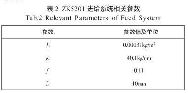 由此,ZK5201 数控系统进给系统的误差主要由三部分组成:机械传动的间隙误差 e2、滚珠丝杠与主传动机构自身的制造误差 e3和系统自身的弹性变形误差(其中:K—系统的等效扭转刚度;J0—等效转动惯量;f—机械系统的等效阻尼;L—滚珠丝杠的导程)。其中的第一项 e2和第二项 e3的误差均为定值,可变的误差项仅有第三项-系统自身的弹性变形误差,它是系统误差的主要来源。