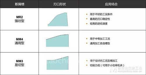 三种槽型,都带有短修光刃,MM3、MM4、MR2,产品适用性广,可以获得较好的表面粗糙度;