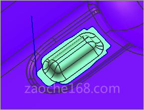 此处在设置分模线时,是与A面轮廓形状大致随形,还是拉直,不对其做过多要求,产品转角弧度及侧整处产品边界不同、工艺设计的不同,工艺补充也要随之变化。转角区域二次台阶深度设定越深,单向拉伸、则向转角中心聚料现象越明显,变形的可能性也会越大。在后续修边角度及侧整形允许的状态下,可以加大一次台阶与二次台阶的侧壁拔模角,与此同时,增大凹模R角,前保、轮罩方向及转角区域的阻力需同时加大,将进料量控制到最小。