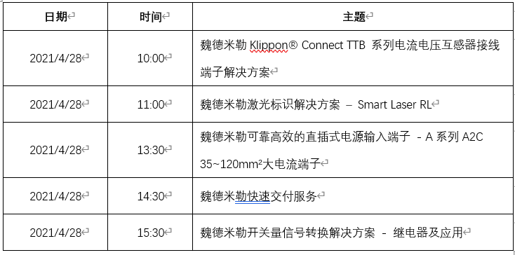 而作为魏德米勒展会季的云端重磅活动之一,4月28日,电气柜产品(CP)事业部将为携众多新品及明星解决方案闪亮登场,为您带来一场丰富的线上直播大餐。