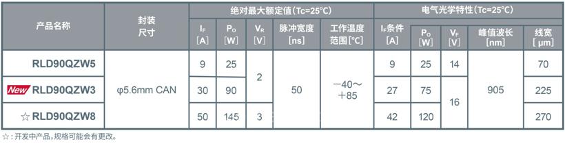 窄线宽75W高输出功率激光二极管“RLD90QZW3”,图片来源:ROHM