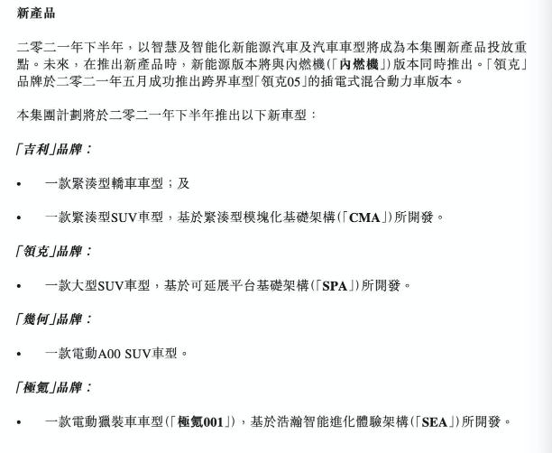 财报显示,今年下半年,密集的推新节奏将得以延续。吉利品牌将推出一款紧凑型轿车、一款紧凑型SUV(基于CMA架构开发);领克品牌将推出一款大型SUV(基于可延展平台基础架构SPA开发);几何品牌将推出一款A00级纯电动SUV;备受关注的极氪001也在新车名单中。