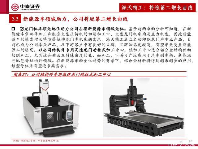 公司层面:①机床产品竞争力突出,国内第一梯队,比肩台韩(前文已分析,不在赘 述)。②经营战略调整效果凸显。小型批量化的立加的产销量在2020年迎来高速增长(销量 同比增长192%),对应的子公司大量国华大幅扭亏,并实现盈利;③具备产能优势。在行业 高景气+进口替代加速的背景下,产能决定订单和业绩弹性。机床领域正常的产能扩张周期在 一年半以上,2020Q2行业强劲复苏以来,多数机床公司新建产能目前仍未释放,而海天精工 原有产能较大,可支持其大量接单,是行业为数不多的充分享受到行业高景气红利的公司。 2020年以来公司已经表现出较高的成长性,2019-2021年,保守收入CAGR为43.47%,净利润 CAGR为77.65%(2021年收入和净利基于我们的盈利预测),远高于行业平均水平。同时,未 来产能扩张周期短,产能制约因素小;④营销策略调整效果凸显。经销商利益与各类产品销 售直接挂钩,保证公司四大类产品可同步放量。