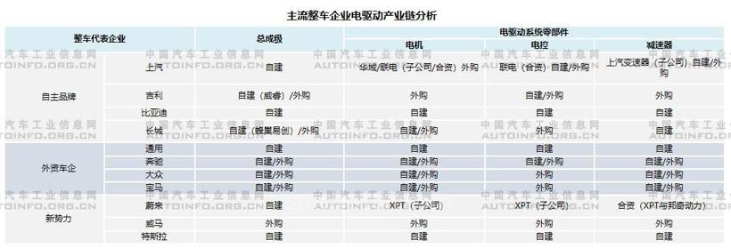 电驱动系统作为新能源汽车的核心部件,同时收到了大部分整车企业的关注,整车企业在电驱系统布局模式方面主要有两大类:自建和外购。