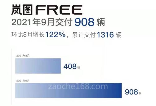 除了新势力外,传统新势力岚图今日也率先公布了9月交付量。岚图FREE在9月延续了8月的好成绩,交付量为908辆,环比上月增长了122%,截止至10月1日0时,岚图FREE共计交付1,316辆。