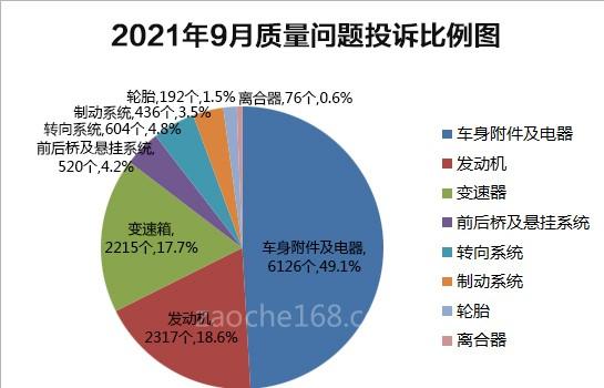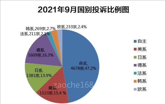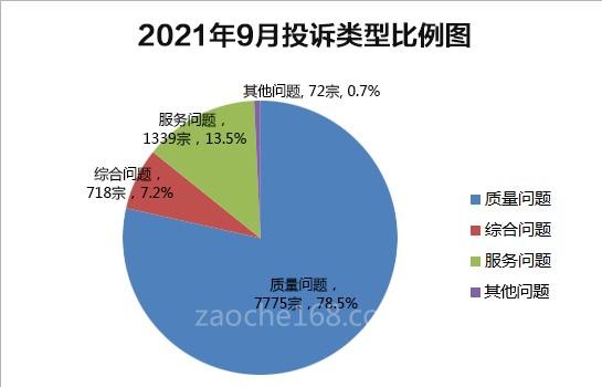 据国内领先的缺陷汽车产品信息收集平台车质网统计,2021年9月车质网共受理车主有效投诉信息9,914宗(其中含10宗针对第三方平台投诉),连续第三个月投诉量突破9,000宗,创造了年内月投诉量最高纪录,环比上涨3%,同比上涨约7.4%。