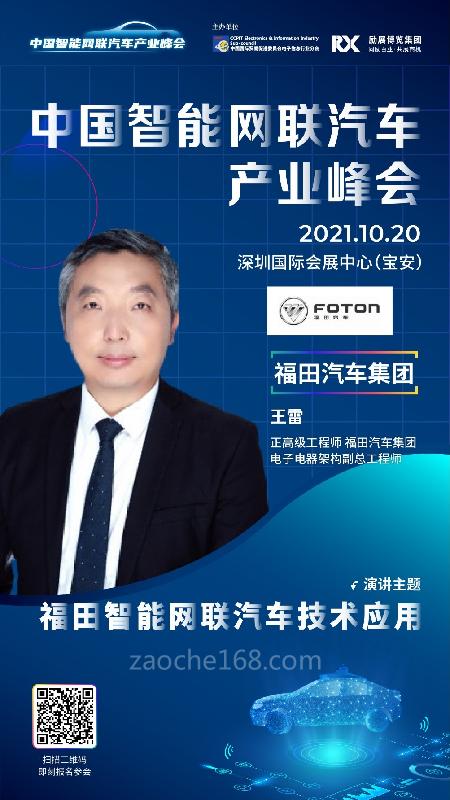 福田汽车集团正高级工程师,电子电器架构副总工程师王雷先生,将分享“福田智能网联汽车技术应用”的内容。作为我国商用车领导者品牌,福田汽车持续深入新能源、智能网联技术探索,在自动驾驶领域有着雄厚的技术实力,以智能科技打造全球竞争力,正在大力推进我国智能网联汽车发展,实现智能驾驶、车联网、大数据、、智能座舱等产品落地。观众将有机会听到福田在商用车领域涉及到智能网联、自动驾驶、新能源技术应用等方面最新技术趋势,以及商用车作业场景应用的实践经验。