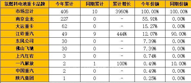 今年前三季度,大运、解放、东风、红岩、重汽、佛山飞驰等都加入到氢能重卡的“战局”中来;接下来,随着更多地区的氢能重卡从试运营转为批量化示范运行,将会有更多企业的产品上牌运营。