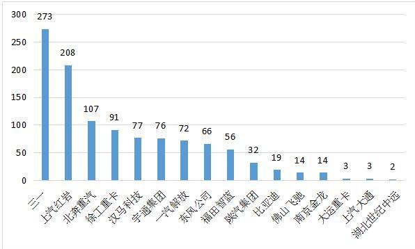 2021年1-9月新能源重卡企业销量排行(单位:辆)