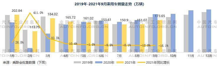 乘联会数据显示,今年1-9月累计批发销量1460.2万辆,同比增长11.3%,增幅比1-8月继续回落4.9个百分点,较2019年同期减少40.2万辆。