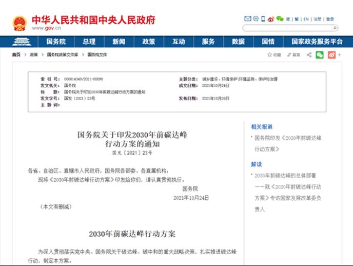 国务院发布碳达峰行动方案 纯电/氢能/燃气重卡热度增加