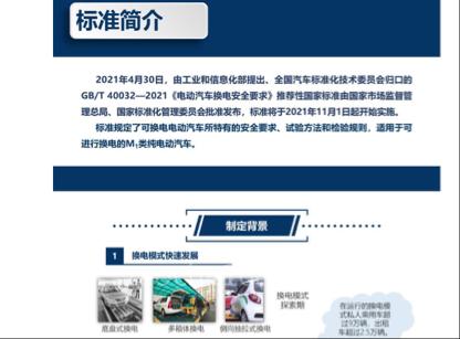5月10日,从工信部网站获悉,GB/T 40032-2021《电动汽车换电安全要求》推荐性国家标准的细节进一步公布,标准在2021年4月30日发布,将于2021年11月1日起开始实施,另外该国家标准要求为推荐性标准,而不是强制性标准。标准规定了可换电电动汽车所特有的安全要求、试验方法和检验规则。