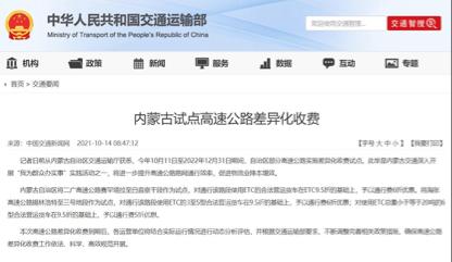 根据《交通运输部 国家发展改革委 财政部关于印发<全面推广高速公路差异化收费实施方案>的通知》(交公路函〔2021〕228号)要求,进一步深化供给侧结构性改革,提升高速公路网通行效率,降低高速公路出行成本,促进物流业降本增效,内蒙古自治区结合自身实际,对区内部分高速公路路段的货车通行费收费标准实施差异化收费试点。