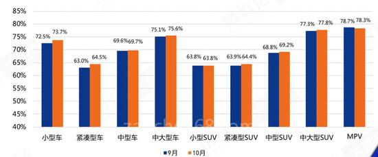 另外,在二手车市场,车辆集体“缩量涨价”的现象已经持续两个月,分级别看,紧凑型轿车10月保值率涨幅最大,环比上涨1.5个百分点至64.5%,不过其保值率仍在所有级别中垫底;MPV车型保值率最高,但近期MPV新车扎堆上市,潜在消费者注意力转移至新车,导致MPV二手车价格小幅下滑。