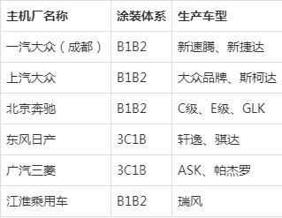 表2 3C1B、B1B2涂装工艺在国内的应用厂家
