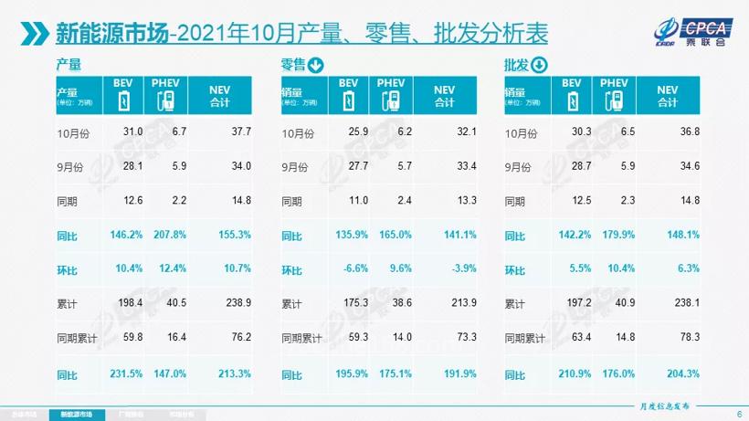 另外,10月份乘联会乘用车出口(含整车与CKD)18.8万辆,同比增长141%。其中,新能源车占出口总量的比重达到了30%。尤为值得一提的是,仅特斯拉中国就出口了40666辆。