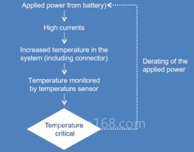 因此,必须对xEV中的关键接触点(例如电池和电机逆变器之间的连接器)进行热监控。如果即将发生过热,则可以及时调节电流。启动电流降额的基于NTC 的温度传感器适用于监控关键点的温度。图1展示了控制原理。