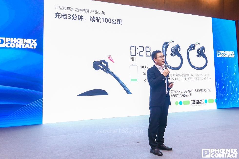 而在11月6号的进行的创新产品技术&行业整体解决方案论坛中,菲尼克斯电气的技术专家朱益也进行了大功率充电连接解决方案和充换电连接产品介绍。无论是省时、高效、安全还是利用率,都作出了创新。