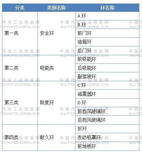 根据环状结构对车身性能的影响,可以将16个环分为四类。分类情况如表1所示。