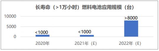 2022年,在燃料电池示范政策推动下,寿命超过10000小时的燃料电池系统将实现在物流、长途运输、码头、矿山、长途客运等长途重载领域的多场景应用。当前,亿华通、未势、上海重塑、捷氢、潍柴动力等多家企业发布的燃料电池系统可使用用寿命超过10000h。