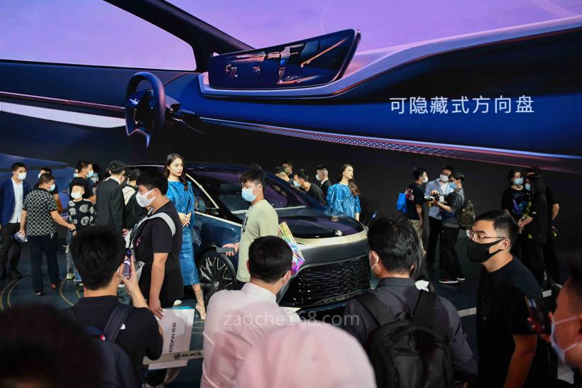 同样火爆的还有上汽通用凯迪拉克。凯迪拉克将全新纯电动车型LYRIQ摆放在了展台最显眼的位置,如果想近距离拍摄,还需要预约排队等候。这种感觉好像在去什么网红餐厅打卡,于是果断放弃进入展台的机会,由此可见媒体和观众对于这台新车的关注度有多高。