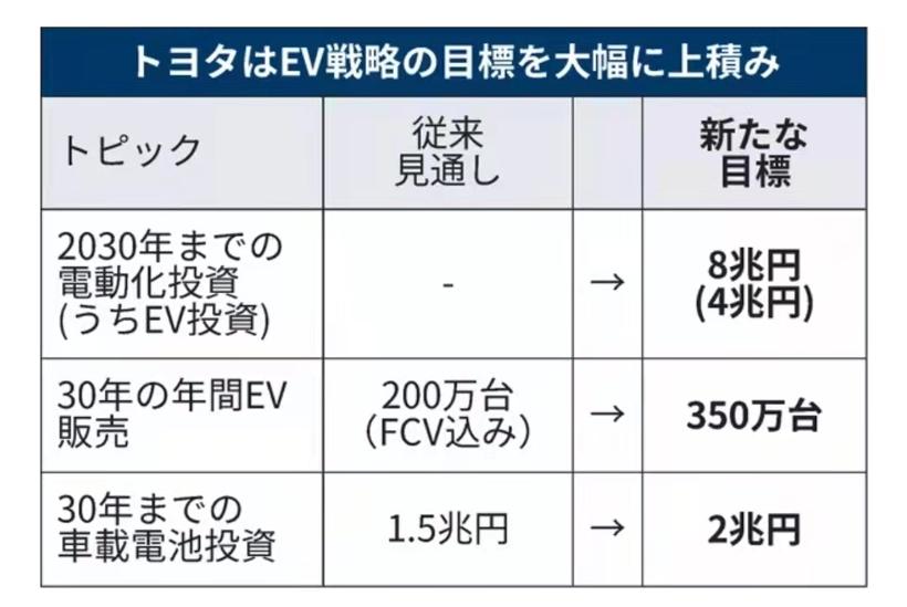 值得一提的是,在2030年转向纯电动的4亿日元投资里,对电池领域的投资额被划定为2万亿日元,这一数字,较今年9月份宣布的1.5万亿日元提高了0.5万亿日元。