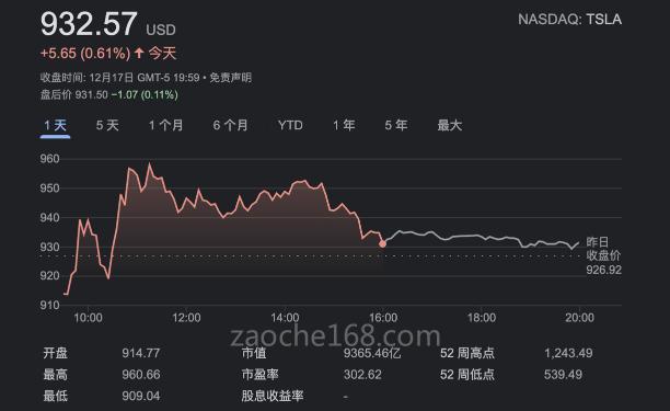 上周市值跌破万亿以来,特斯拉股价一直处于低价徘徊,这也是今年以来,特斯拉第三次进入熊市地带。截至发稿,特斯拉股价仅为932.57美元,与此前1229.91美元的收盘历史高位相比,缩水24%,市值也跌至9365亿美元。