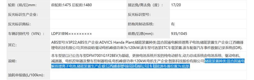 从产品的申报图和对应型号来看,该纯电动轿车为东风风神E70。按照申报进度,该车型预计将在春节前交付,这就意味着半固态电池即将进入量产装车阶段。