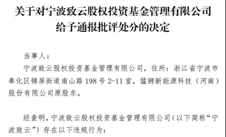 值得一提的是,12月20日,*ST猛狮发布公告,公开深圳交易所对其原股东宁波致云股权投资基金管理有限公司(简称“宁波致云”)的通报批评处分。公告称,宁波致云于2019 年11月27日承诺增持“*ST 猛狮”的股份,且在增持完成后 12 个月内不减持上述股票。但是,在2021年8月27日,宁波致云以集中竞价方式减持其持有的*ST 猛狮股份644.55万股,占*ST 猛狮总股本的 1.14%。也就是说,宁波致云由说好的增持,变成了偷偷地减持。深圳交易所对宁波致云进行相对应的处分。