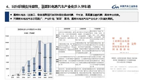 氢燃料电池(在港口、物流园等相对封闭和固定路线场景,中长途、高载重运输场景)具有突出优势。开展燃料电池汽车示范推广,随着产业补贴“新政” 落地,各地方也出台了相应的配套政策,氢燃料电池汽车产业化也步入了快速发展期。