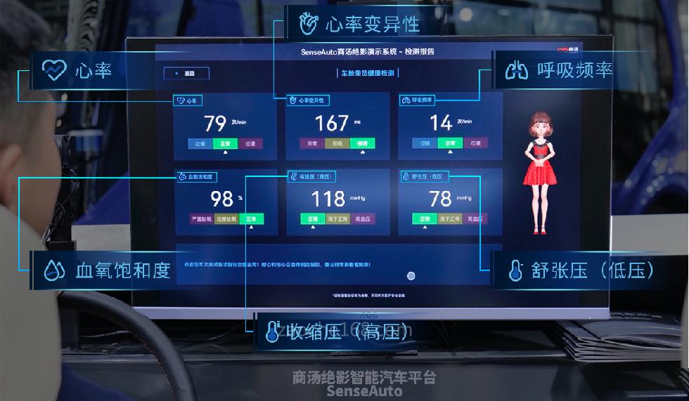 值得一提的是,基于先进的计算机视觉算法,商汤日前在广州车展上全新发布了车舱乘员健康检测系统,可以实现最快15秒就可以测出用户当前的心率、心率变异性、血氧饱和度、血压和呼吸频率,测量结果准确度接近医疗专用器械水平。