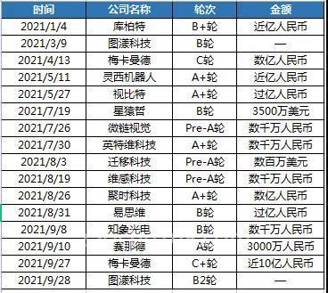 虽然目前行业发展存在难点,但3D视觉+工业机器人未来发展前景依然被看好。2021年3D视觉领域融资热度不减,据不完全统计,截至2021年10月,融资事件已有十多起。相信有众多资金的注入,未来行业会加快研发进程、实现快速发展。