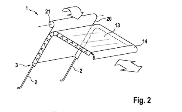 专利申请文件显示一款E9X宝马3系车示意图。图中展示了一种新型地图袋,其中的网状结构被可折叠表面取代,该表面可从轨道底部向外延伸。这样,后面的乘客就可以轻松地收放折叠桌,使其随意向前或向后伸展。