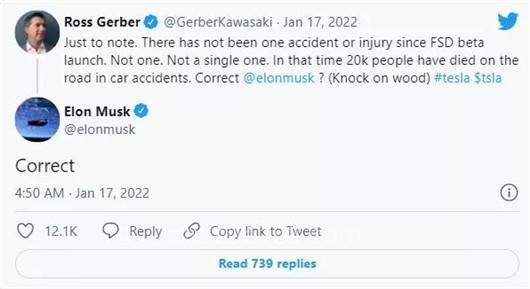 “自从FSD测试版上线以来,就没有发生过任何一起伤亡事故,一个都没有!而同期的(美国),有2万人死于车祸。是不是这样的?”