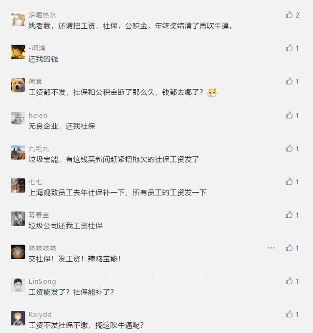 宝能汽车另外几位员工也向抱怨道,“公积金账户一直是停缴状态,社保也是说停就停”、“这几个月,工资都不能正常发了。不发,还让保密,不要对外声张。”