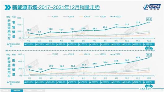 数据不会说谎,据乘联会相关统计显示,刚刚过去的12月,新能源乘用车批发销量达到50.5万辆,同比增长138.9%,环比增长17.8%。1-12月新能源乘用车批发331.2万辆,同比增长181.0%。