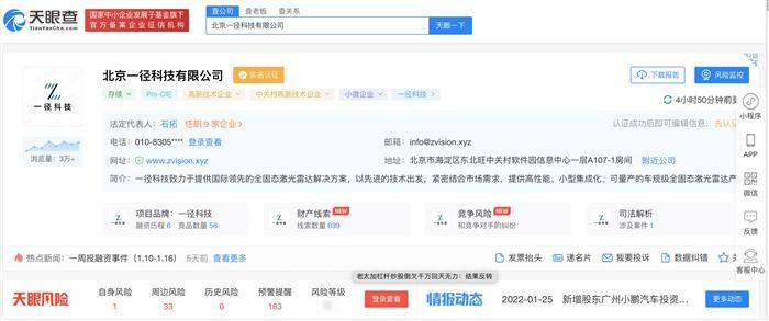 据悉,北京一径科技有限公司为全固态激光雷达解决方案服务商。
