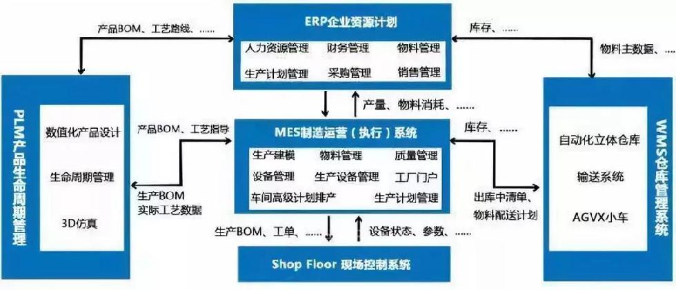 数字化工厂核心,即是ERP、PLM、MOM、WMS、DCS五大系统的全面集成,并以MOM/MES(制造运营系统)为中枢核心,形成智能制造创新平台。