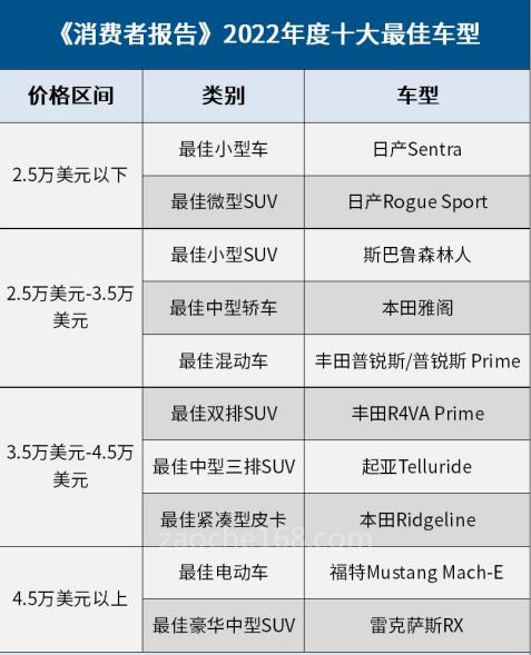 2022年2月17日,美国颇具影响力的《消费者报告》(Consumer Reports)公布了《2022年度汽车品牌综合排行榜》和《2022年度十大最佳车型》。
