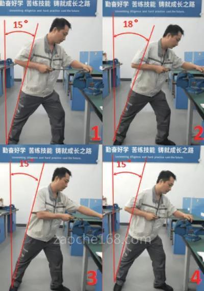 锉削动作不标准容易造成锉削表面质量差,操作时也容易疲劳。一名优秀的钳工,应掌握正确的锉削姿势,养成良好的动作习惯。